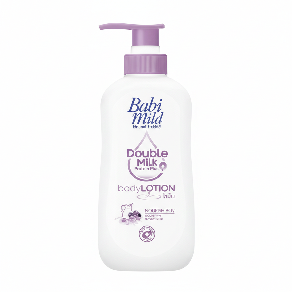 This is the “nutrition powerhouse” of the Babi Mild range. If the Sweety Pink is for scent and Bioganik is for sensitivity, the Double Milk (Purple/White bottle) is designed specifically for skin repair and extreme softness.